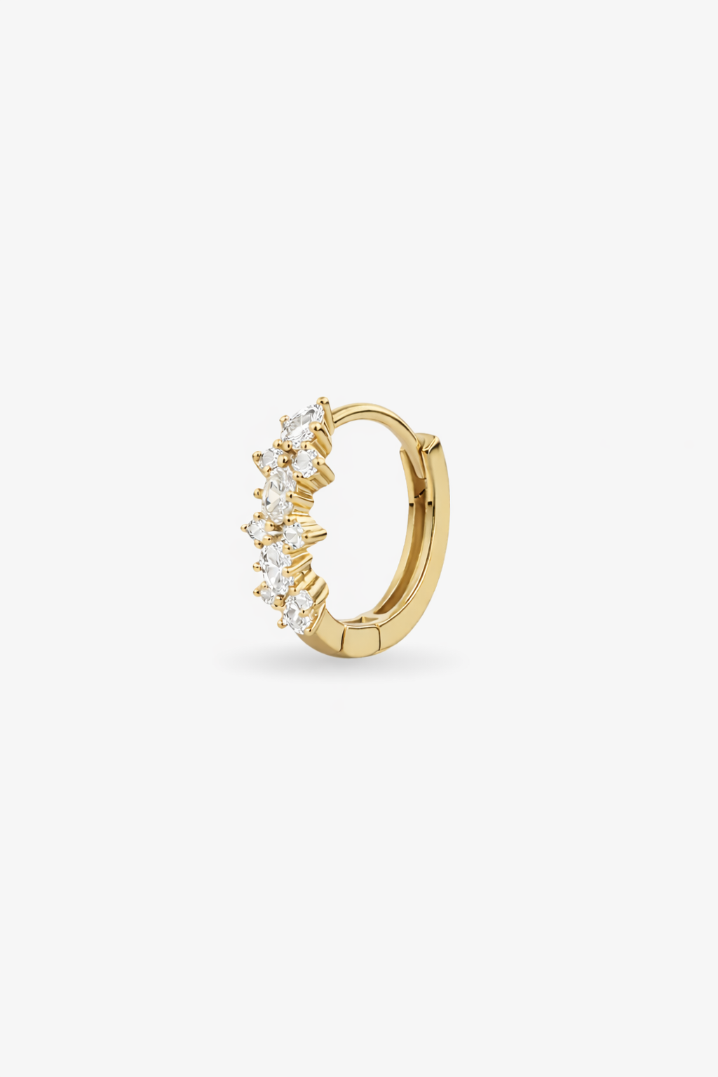 Révélez votre éclat avec HUDA, une mini créole en doré sertie de pierres multicolores aux tailles délicates. Sa composition florale et vibrante capte la lumière sous tous les angles, insufflant une énergie joyeuse et précieuse à la main.
