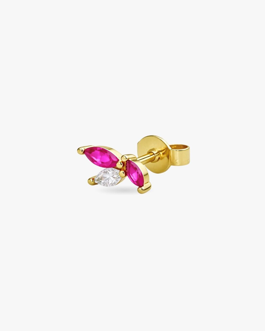 Affirmez une élégance subtile avec STUART, une mini puce au design délicat et lumineux. Composée de trois zircons taille marquise sertis avec précision, elle crée un effet feuille raffiné qui capte la lumière à chaque mouvement.