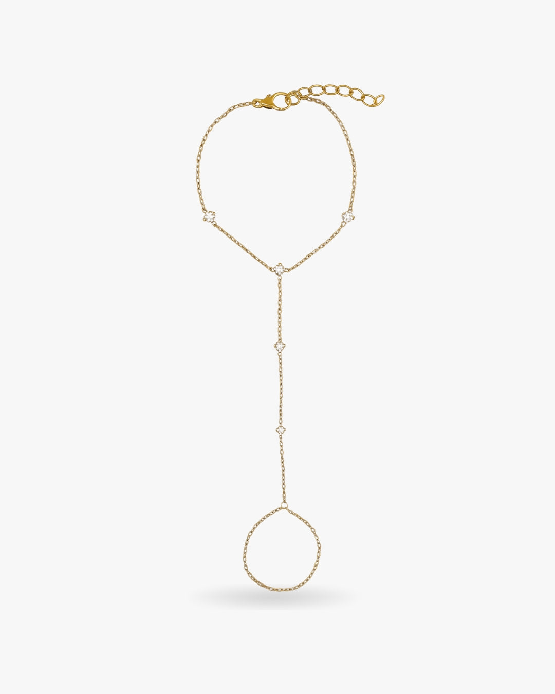 Sublimez votre main avec ce bracelet bague délicat, MINDY, une chaîne fine ponctuée de détails scintillants pour une allure raffinée.