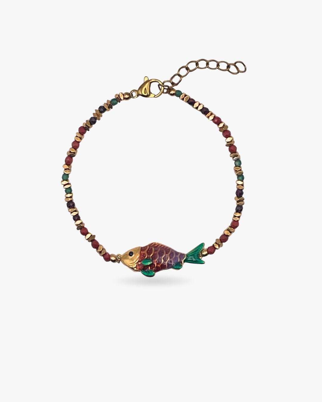 Adoptez LUCKY FISH, un bracelet perlé aux nuances chaleureuses, sublimé par un poisson coloré porte-bonheur. Une pièce fun et tendance, parfaite pour apporter originalité, couleur et bonne énergie à vos looks du quotidien.