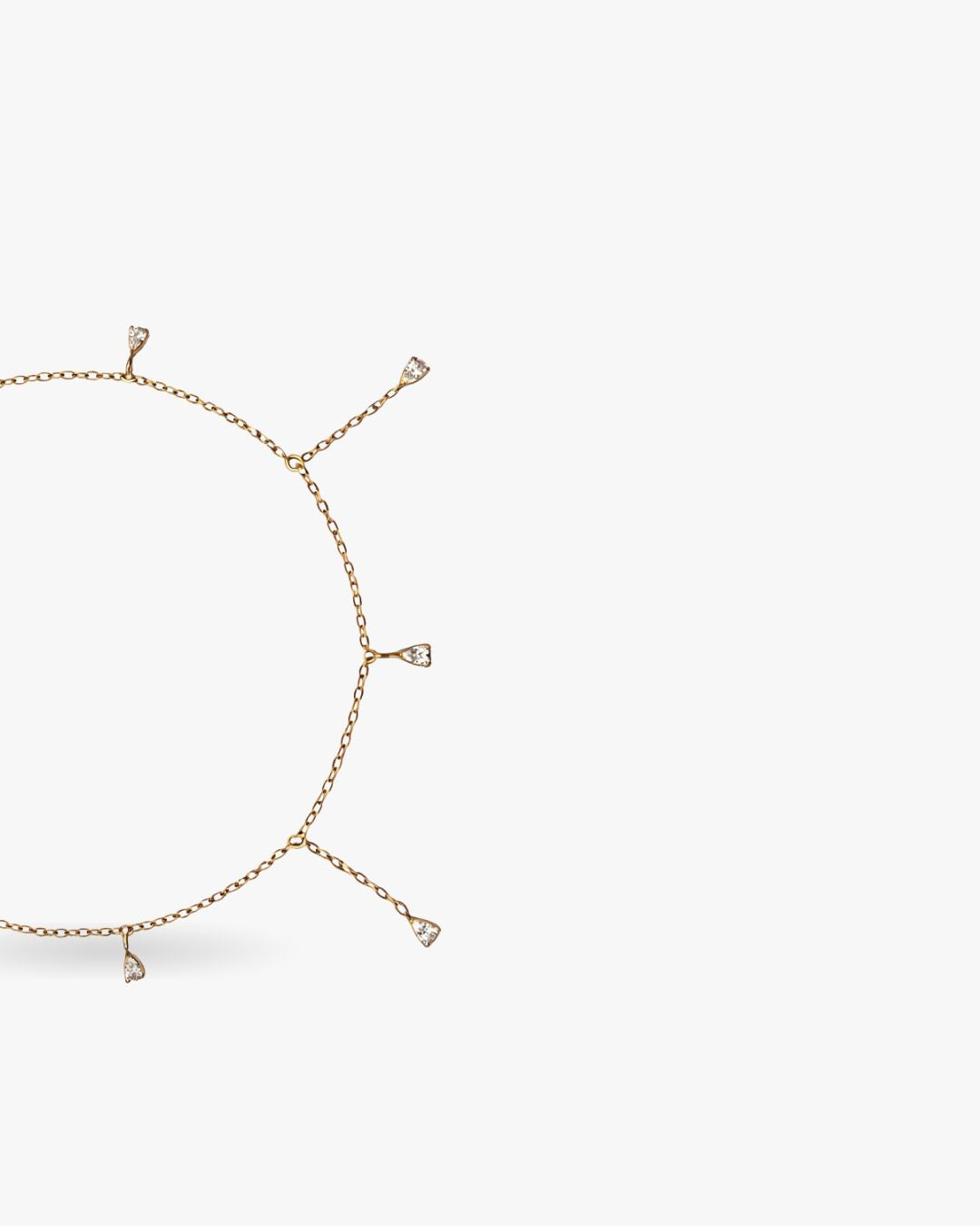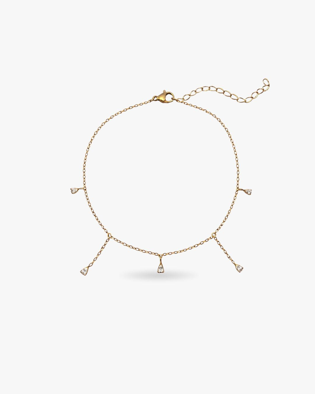 Sublimez votre cheville avec CRISTALYA, une chaîne de pied fine et délicatement scintillante. Ses pampilles en forme de gouttes serties de zircons captent la lumière à chaque mouvement, apportant une touche lumineuse et féminine.