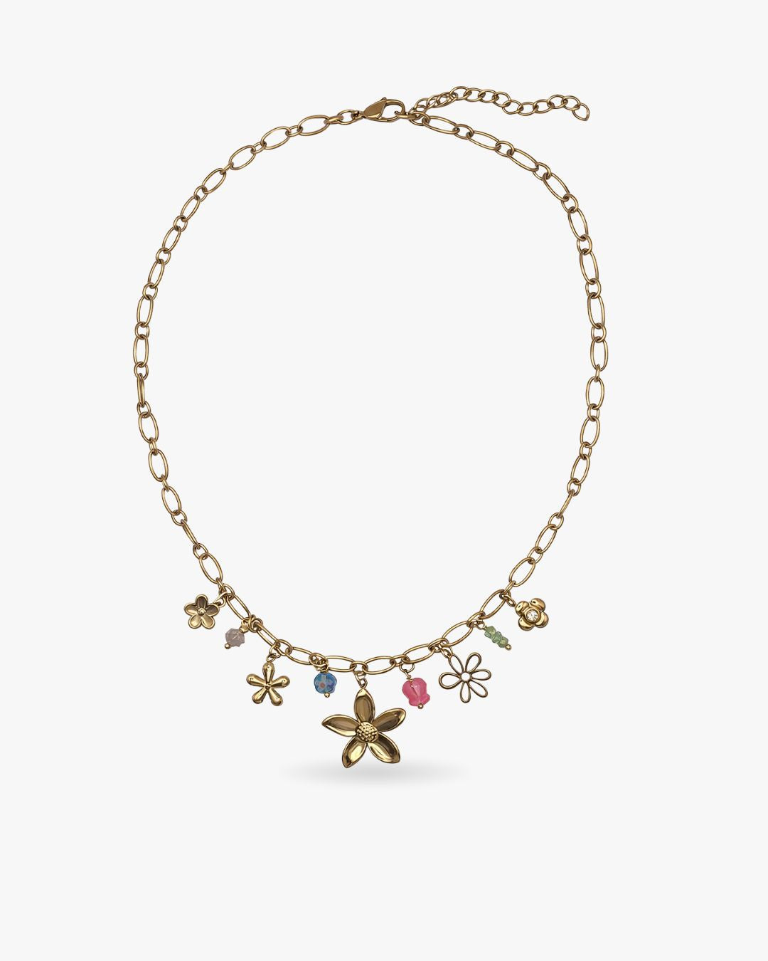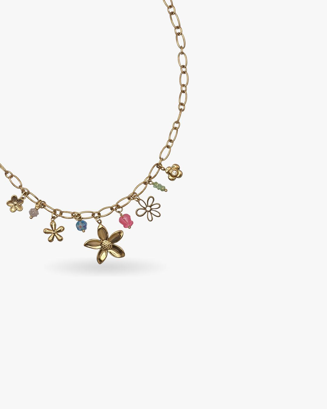 Adoptez le collier FLEURY, orné de charms floraux et perles colorées, qui apporte une touche fraîche, joyeuse et ultra-tendance à chacun de vos looks.
