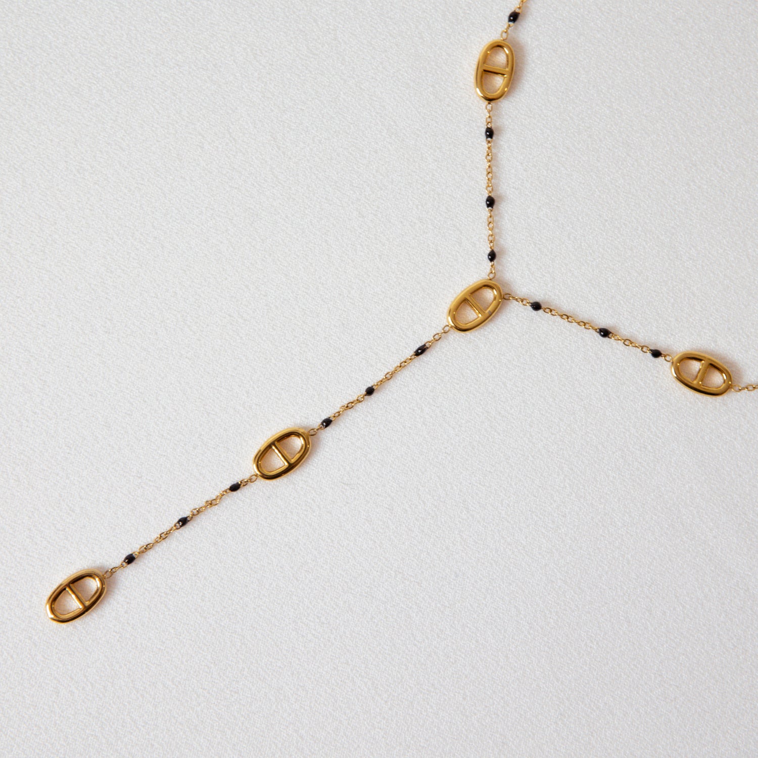 Le collier NUSHABA sera votre indispensable du quotidien. Il se porte aussi bien seul qu'accompagné d'autres bijoux.