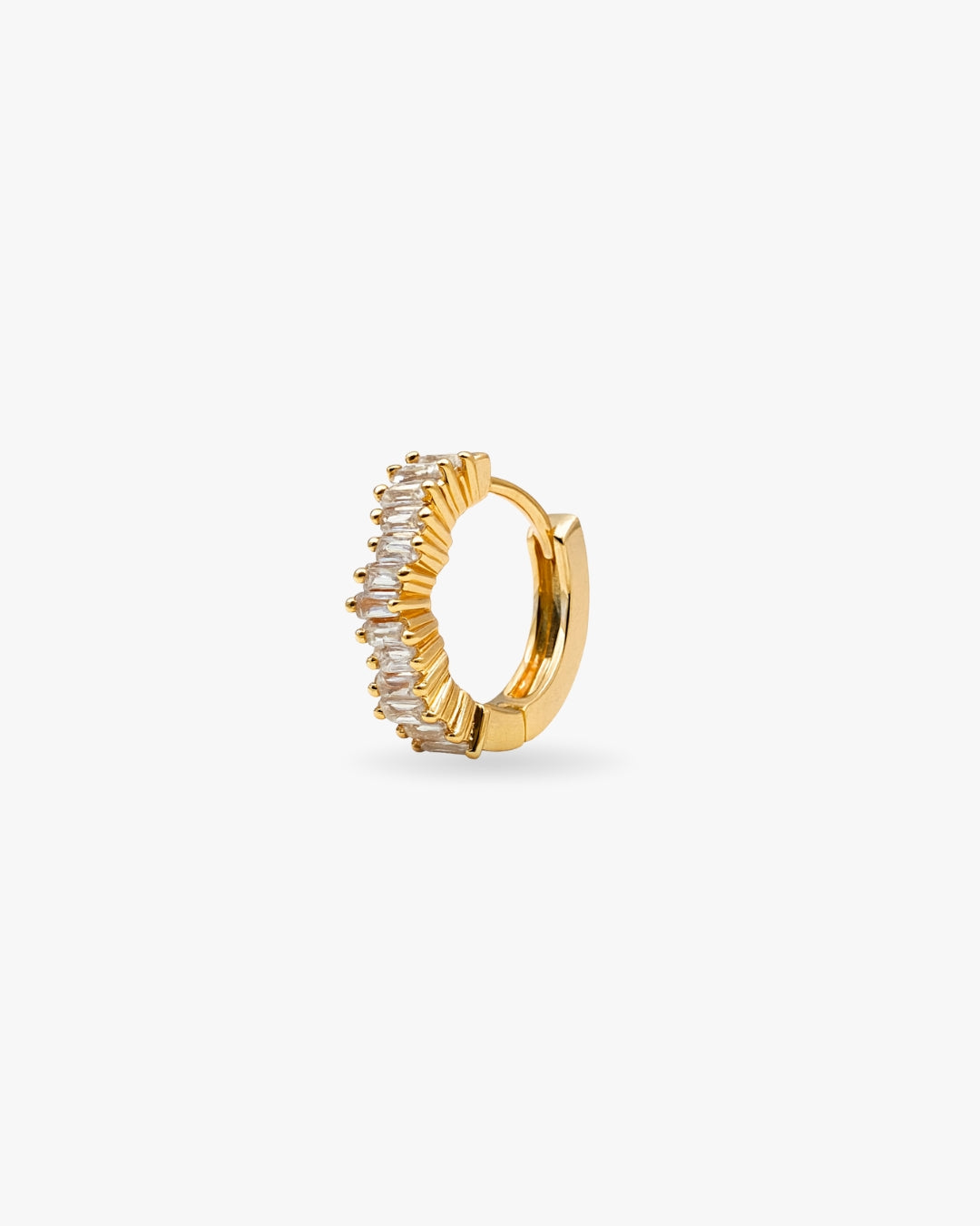 Osez l’éclat avec SCARLETT, une mini créole dorée sertie de baguettes étincelantes, parfaite pour apporter une touche chic, lumineuse et sophistiquée à toutes vos tenues.