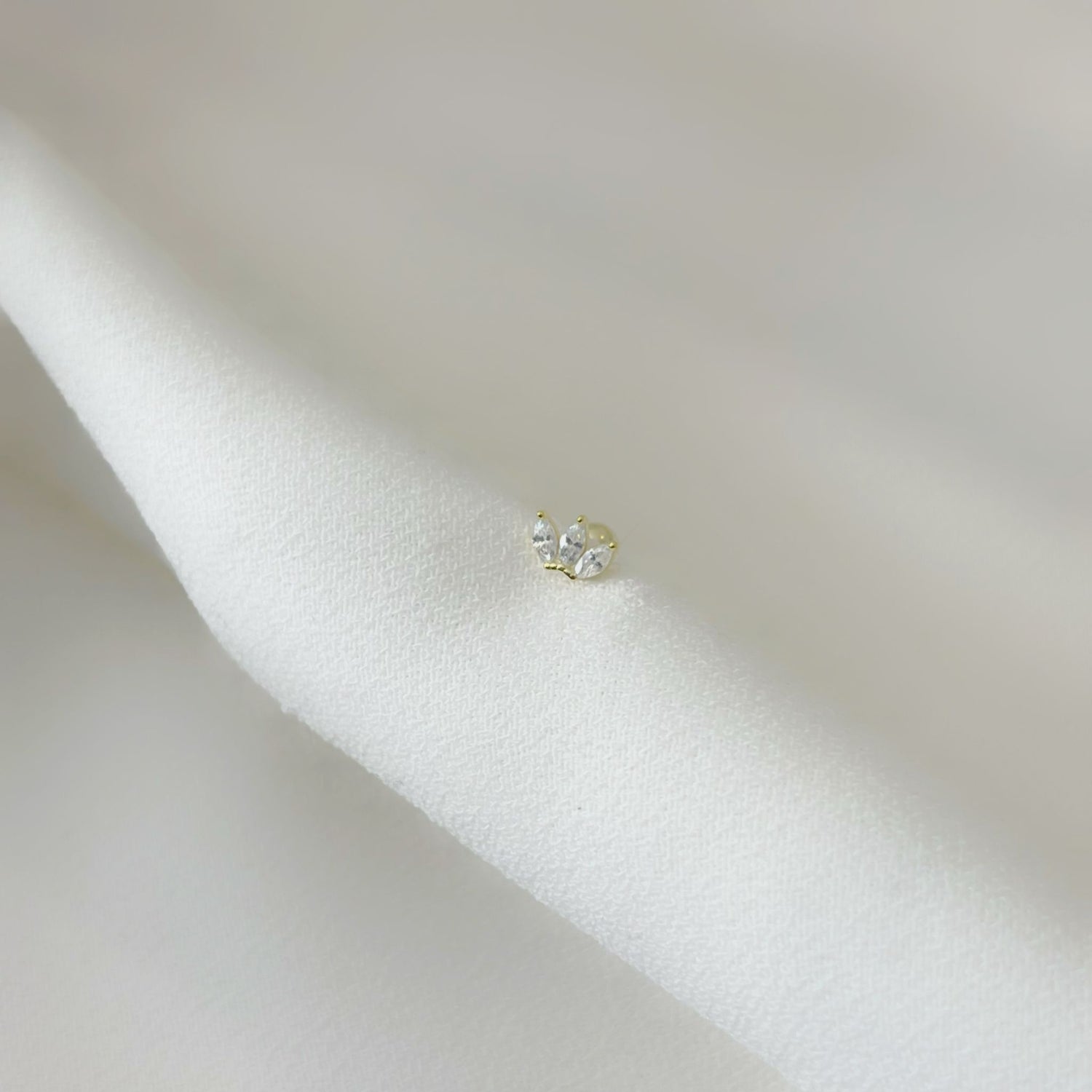 Fin et délicat, le piercing FLOR sera votre indispensable de tous les jours. Composé de 3 strass en forme de pétales, il se porte aussi bien seul qu’accompagné d’autres boucles d’oreilles.