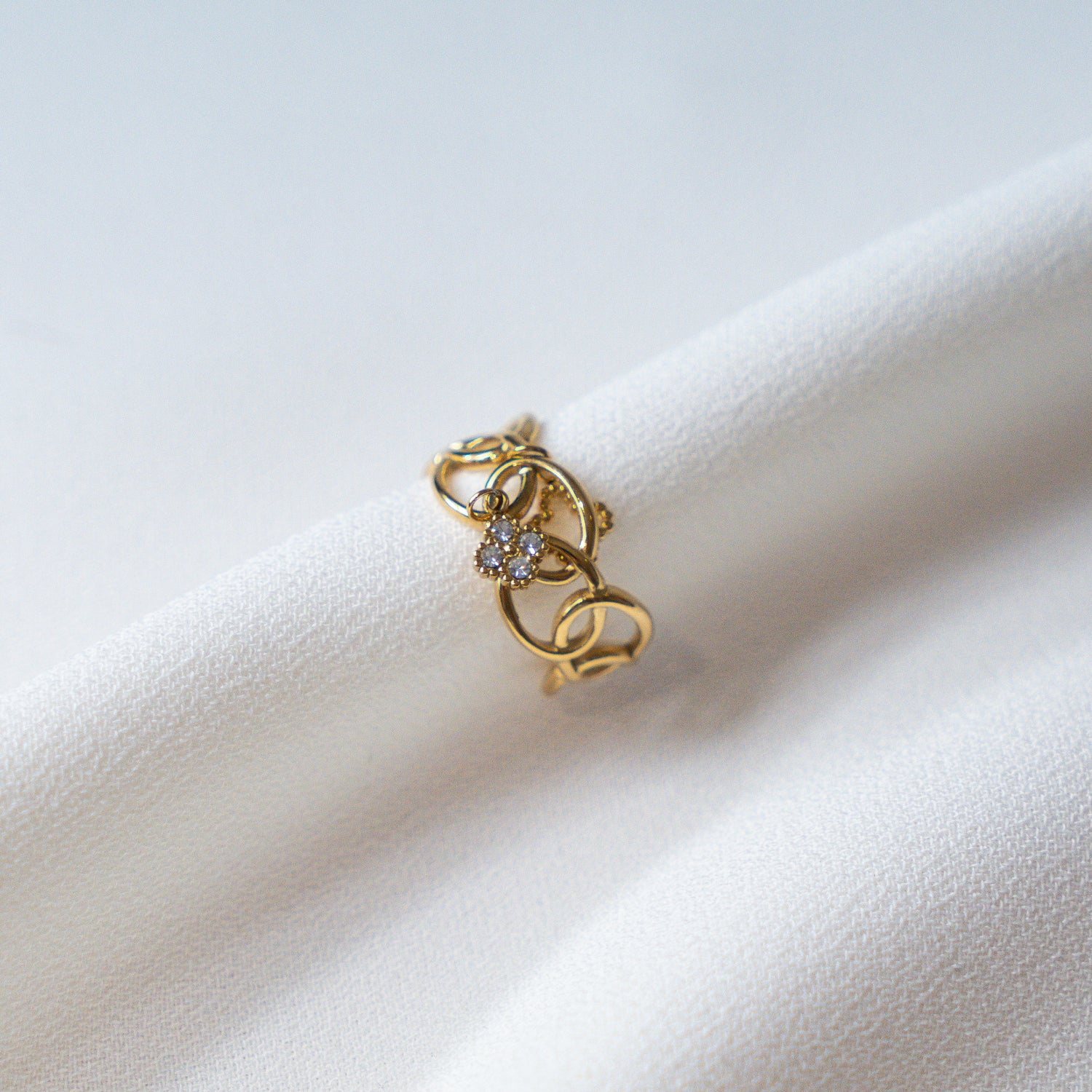 Grâce à ses breloques qui scintillent avec élégance à chaque mouvement et son design raffiné, la bague NOOR embellira à elle seule votre main.