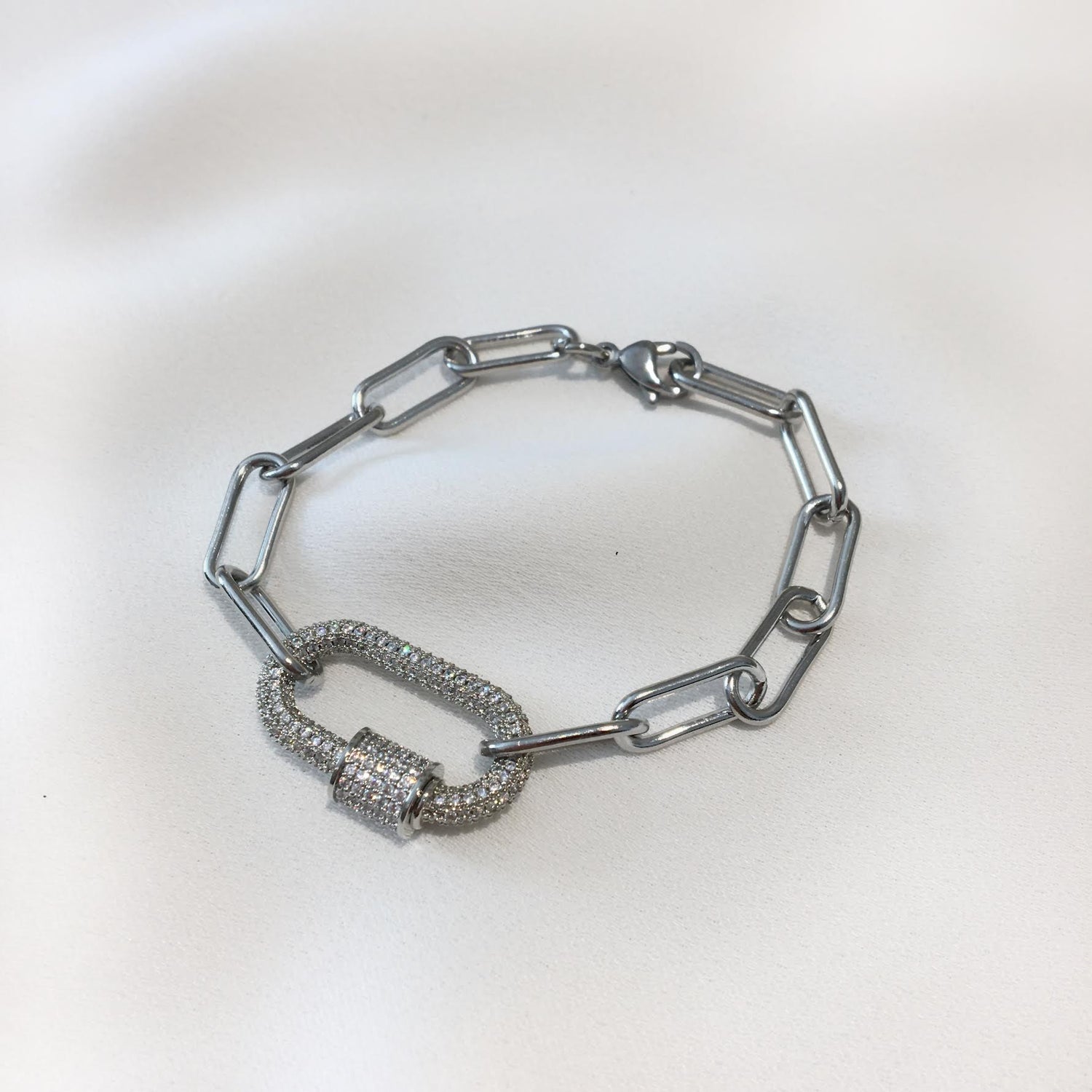 L’intemporel bracelet HYDOR composé d’une chaine et d’une boucle à strass est l’accessoire parfait pour habiller votre poignet. Se porte seul ou accompagné de sa déclinaison en collier et en collier baby.