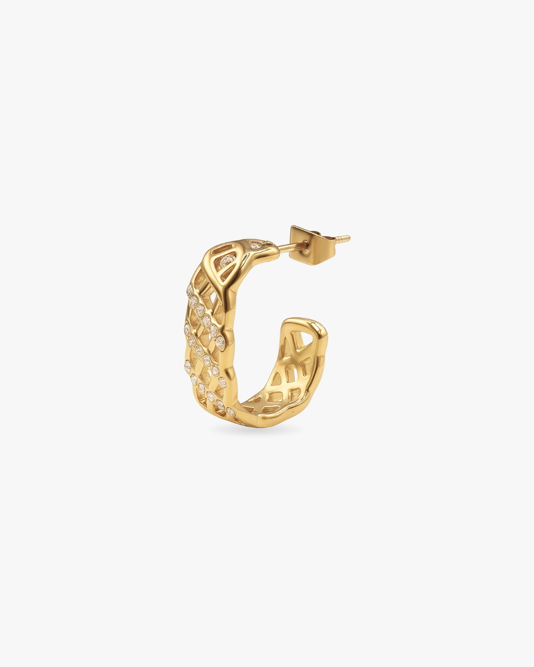Sublimez votre style avec ISABEL, une mono-boucle en acier inoxydable au design sculptural, délicatement rehaussée de pierres étincelantes.